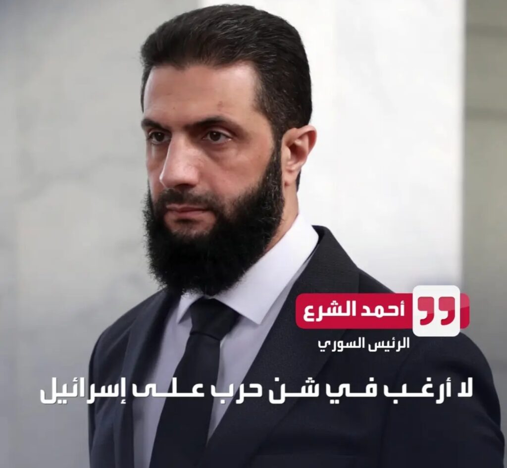 الرئيس السوري #أحمد_الشرع لقناة CBS NEWS الأميركية: لا أرغب في شن حرب على إسرائيل .