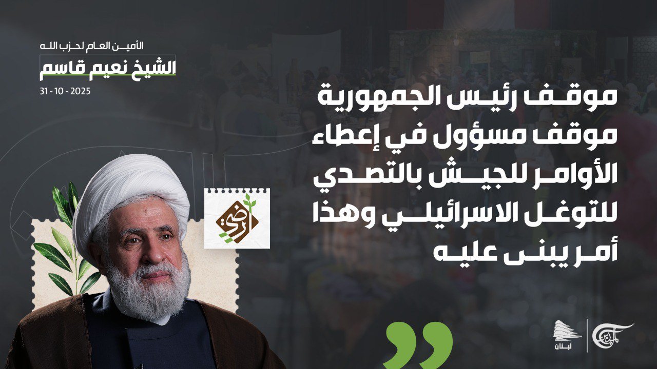 🔸 أرضنا سنستعيدها بتكاتف الوطن وهدف المقاومة هو تحرير الوطن أما هدف العدو فهو الاحتلال والكل في لبنان مسؤول