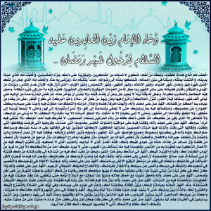 وقال العلامة الرزامي: “شهر رمضان هو موسم الخير والحسنات، وأفضل استثمارا لهذه النعمة استقبال هذا الشهر بقراءة دعاء الإمام السجاد زين العابدين بن علي بن الحسين رضي الله عنهم ، وأن نجعل هذا الدعاء كمنهجية وتوجيهات نسير عليها خلال شهر الصوم لأنه كما قال سيدنا ومولانا السيد حسين بدر الدين الحوثي أنه صاغها كمنهجية بشكل دعاء”.
