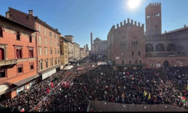 شهدت المدن الإيطالية اليوم الجمعة موجة احتجاجات واسعة دعما لغزة وأسطول الصمود حيث خرج مئات الآلاف من المواطنين في إضراب عام دعت إليه النقابات، تنديدا باعتراض الاحتلال الإسرائيلي لأسطول الصمود الذي كان يحمل مواد غذائية إلى القطاع المحاصر.