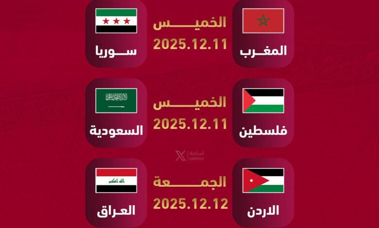 فلسطين × السعودية – الساعة 20:30الجمعة 12 ديسمبر 2025