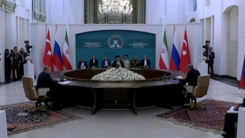 عقد كل من الرئيس الإيراني ابراهيم رئيسي، والروسي فلاديمير بوتين، والتركي رجب طيب إردوغان، الثلاثاء، قمة ثلاثية في العاصمة الإيرانية طهران لمناقشة سبل التسوية في سوريا.