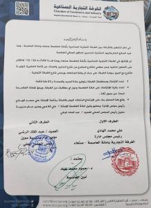 تضمن الاتفاق الذي وقعه رئيس مجلس إدارة الغرفة علي الهادي ومدير مديرية معين عبد الملك الرضي، التعاون لتنفيذ جسر سطحي خرساني للشارع المتفرع من شارع الستين إلى شارع الغرفة التجارية، حيث ستساهم الغرفة في المشروع بتوفير كمية 57 طناً من الحديد، فيما تتولى أمانة العاصمة توفير بقية متطلبات تنفيذ المشروع.