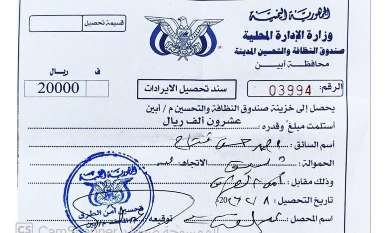 وأوضح أن الرسوم تُجبى بسندات رسمية يحمل جزء كبير منها شعارات الدولة ومؤسساتها، مشيراً إلى أن الجبايات تمتد من #شبوة إلى #أبين و #عدن ثم #لحج و #يافع و #الضالع، وبمبالغ تصل إلى مئات الملايين من الريالات يومياً.