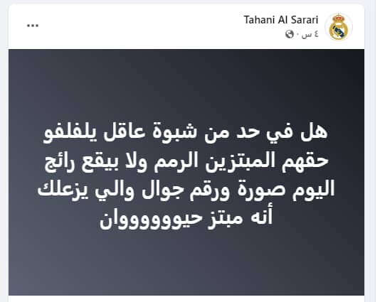 وهددت الصراري بنشر صورة ورقم جوال التهديدات والابتزاز من أحد الأشخاص ينحدر من شبوة، دون التوضيح عن نوعية الابتزاز التي تتعرض له الناشطة الصراري.