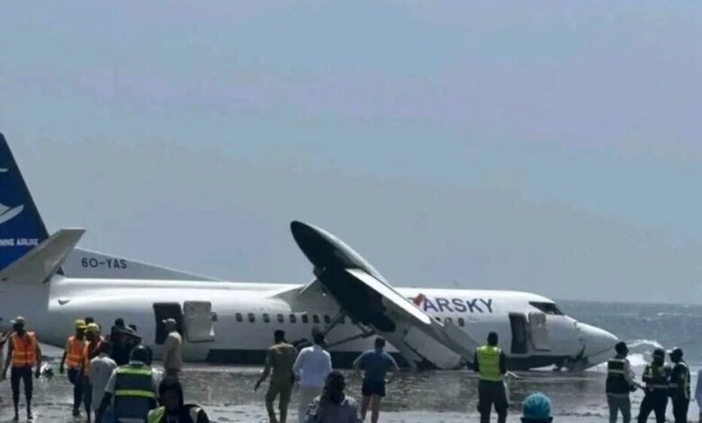 ونجاة 55 شخصا بأعجوبة.. نتيجة هبوط طائرة صومالية على الشاطئ
